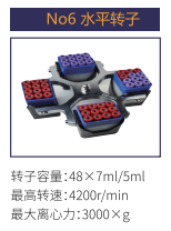 No6 | 水平轉(zhuǎn)子 | 48x7ml/5ml | 4200r/min | 3000xg |