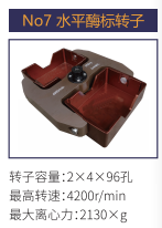No7 | 水平酶標(biāo)轉(zhuǎn)子 | 2X4X96孔 | 4200r/min | 2130xg |