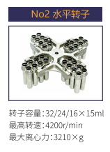 No2 | 水平轉(zhuǎn)子 | 32/24/16x15ml | 4200r/min | 3210xg |